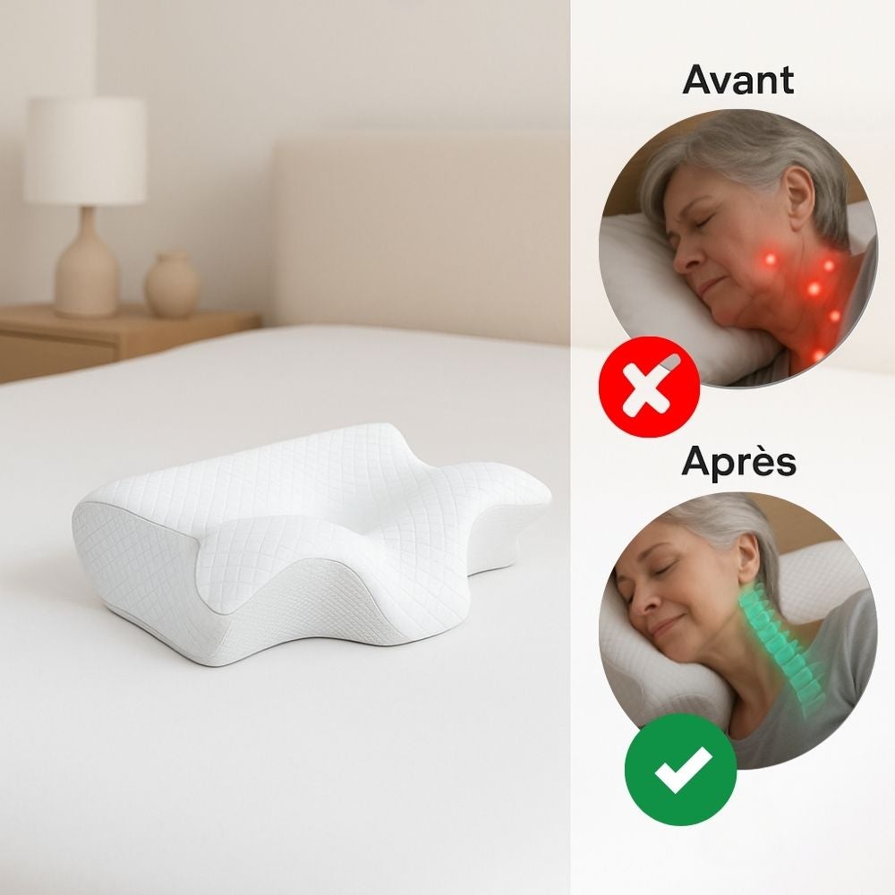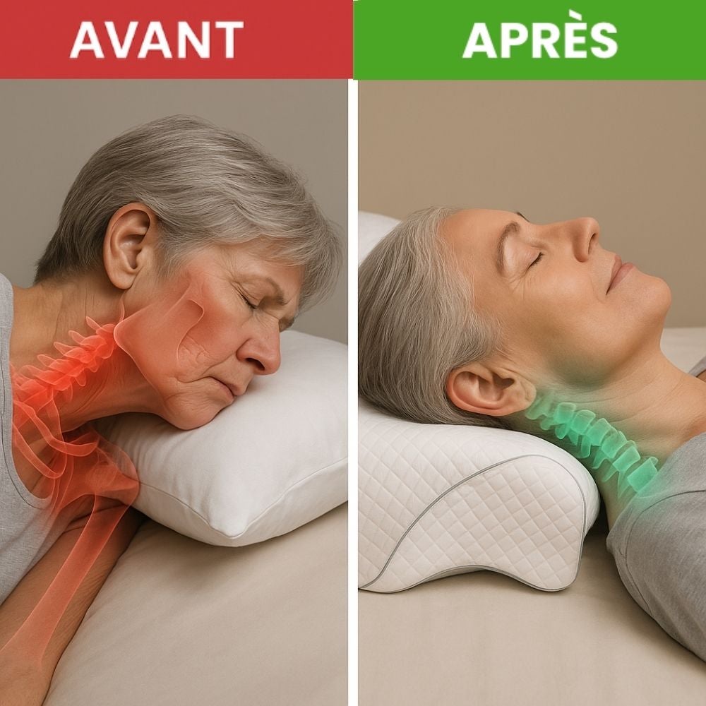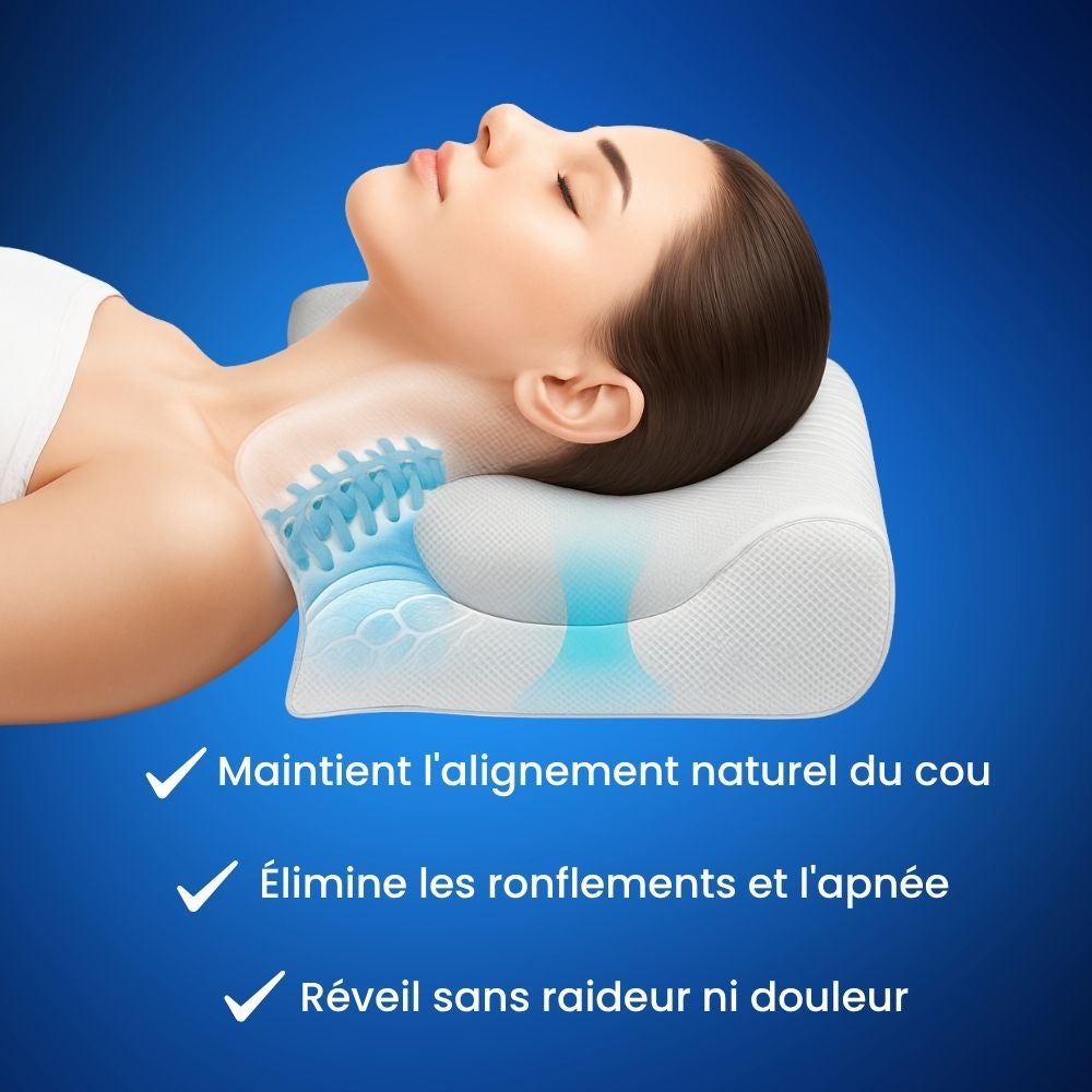 Si vous vous réveillez fatigué, avec des douleurs cervicales, des maux de tête ou même si vous ronflez, vous risquez bien plus qu'une simple nuit agitée. Les oreillers traditionnels obligent souvent le corps à adopter des positions qui compriment les cervicales et restreignent la circulation de l'air, ce qui peut entraîner des problèmes tels que :